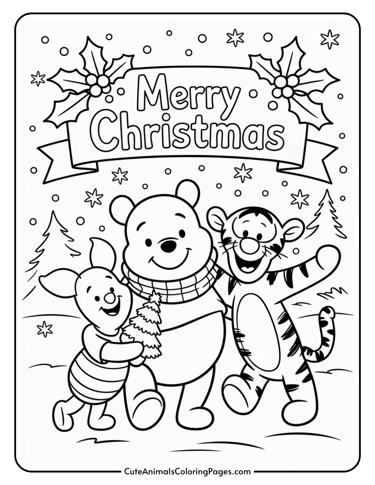 Christmas Coloring Sheets Featuring Pooh’s Friends